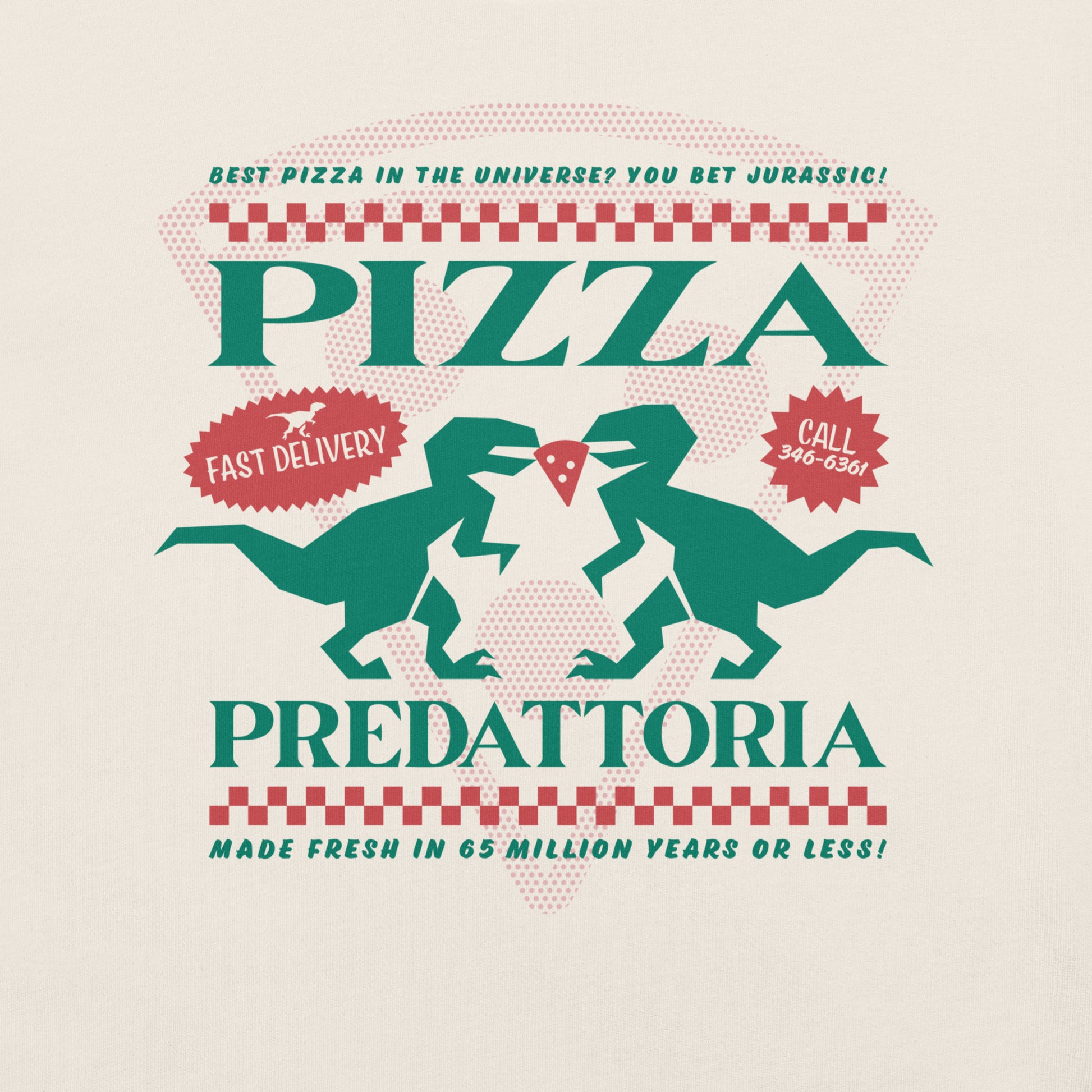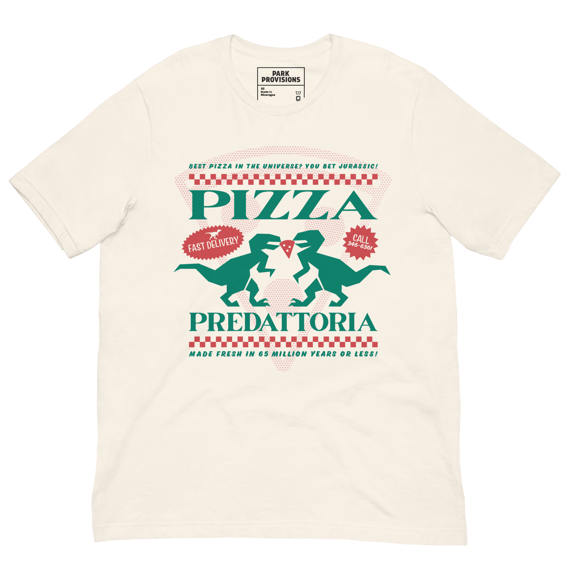 Do you have carnivorous cravings? Or perhaps foraging for something more green for your favorite veggiesaurus? Pick up the phone and call us today. Your hot and fresh pizza pie will be there faster than a raptor. This t-shirt feels soft and lightweight, with the right amount of stretch. It's comfortable and flattering for all.